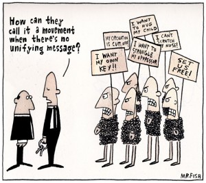My first reaction was to remind everyone of Lincoln’s famous aphorism about not beeing able to fool all of the people, all of the time…but really all the media have to do is fool a small fraction of the people…the greedy, the dishonest, the racist and the jingoist are already self deluded and probably beyond help. All they need are the proverbial 50% plus one (and really, between voter apathy and the lock the fascists have on both parties, not even that) and they’re home free. So the media just has to convince enough of the fair minded and decent folks in the middle that the latest movement is populated with a bunch of disorganized freaks, idealistic college kids, derelects and junkies and the status quo are home free. This OWS thing will go off like a wet squib…just like the Tea Party…a lot of sound and fury signifying nothing…the left’s pity party…then when it gets cold out and the prospect of another night shivering in the rain gets to be less appealing than curling up on the couch in front of (insert favorite TV program here) everyone will go back to their hovels. I do hope I’m wrong but I just think that the human capacity to suffer injustice and indignity is far greater than what the average American is actually suffering under the present system.
